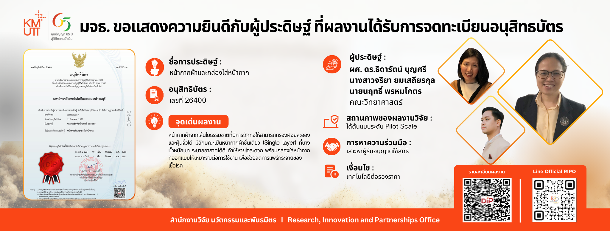 สำนักงานวิจัย นวัตกรรมและพันธมิตร (สวนพ.) ประกาศรับข้อเสนอโครงการวิจัยเพื่อขอรับสนับสนุนทุนอุดห...