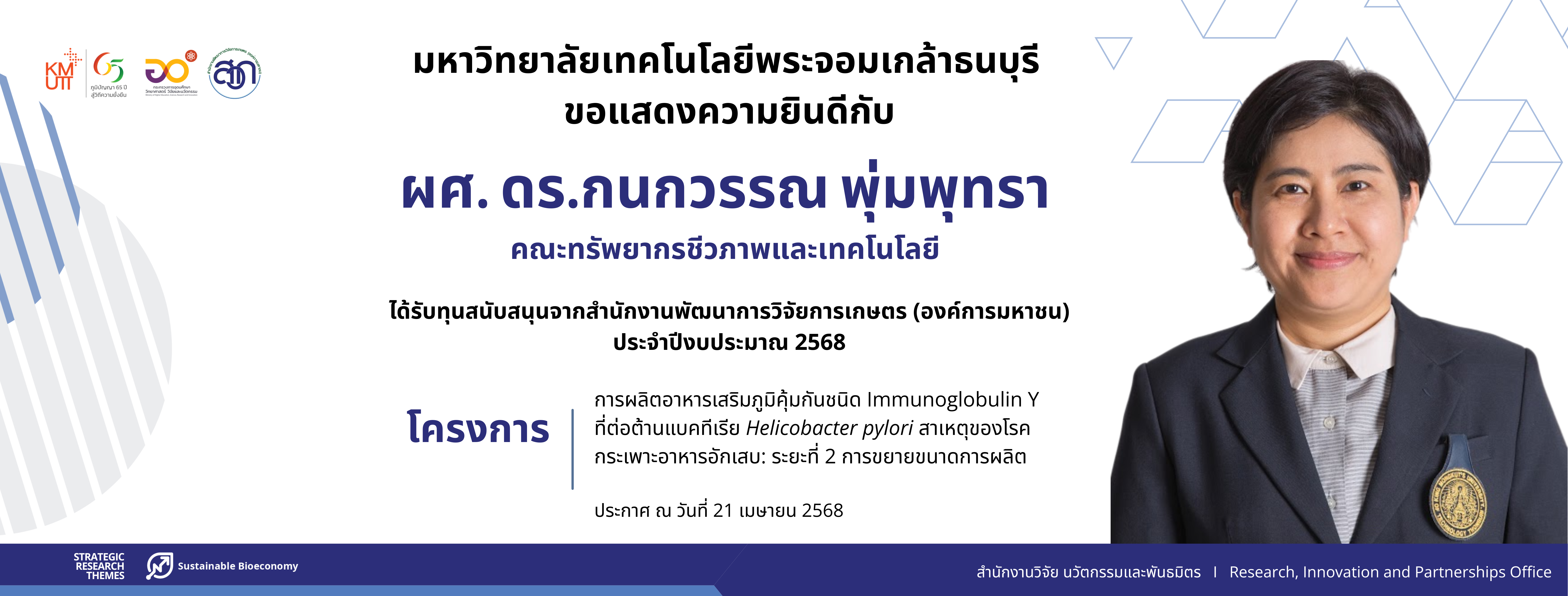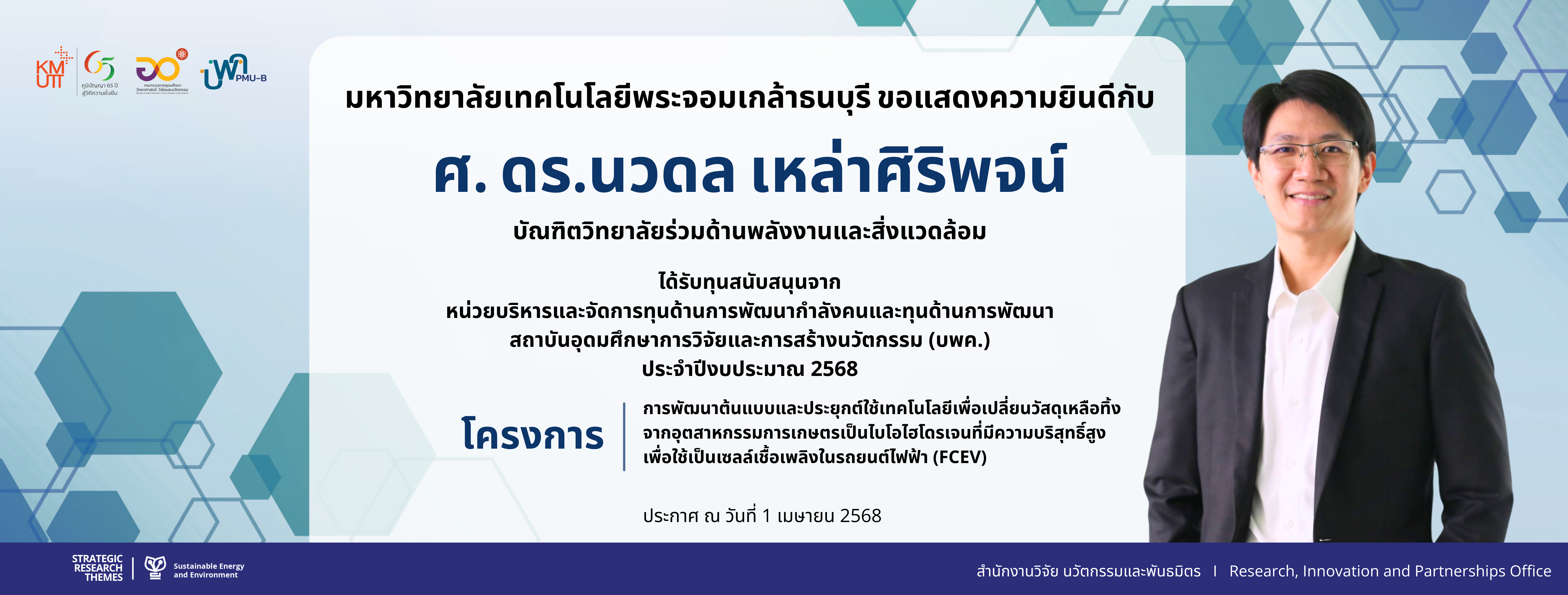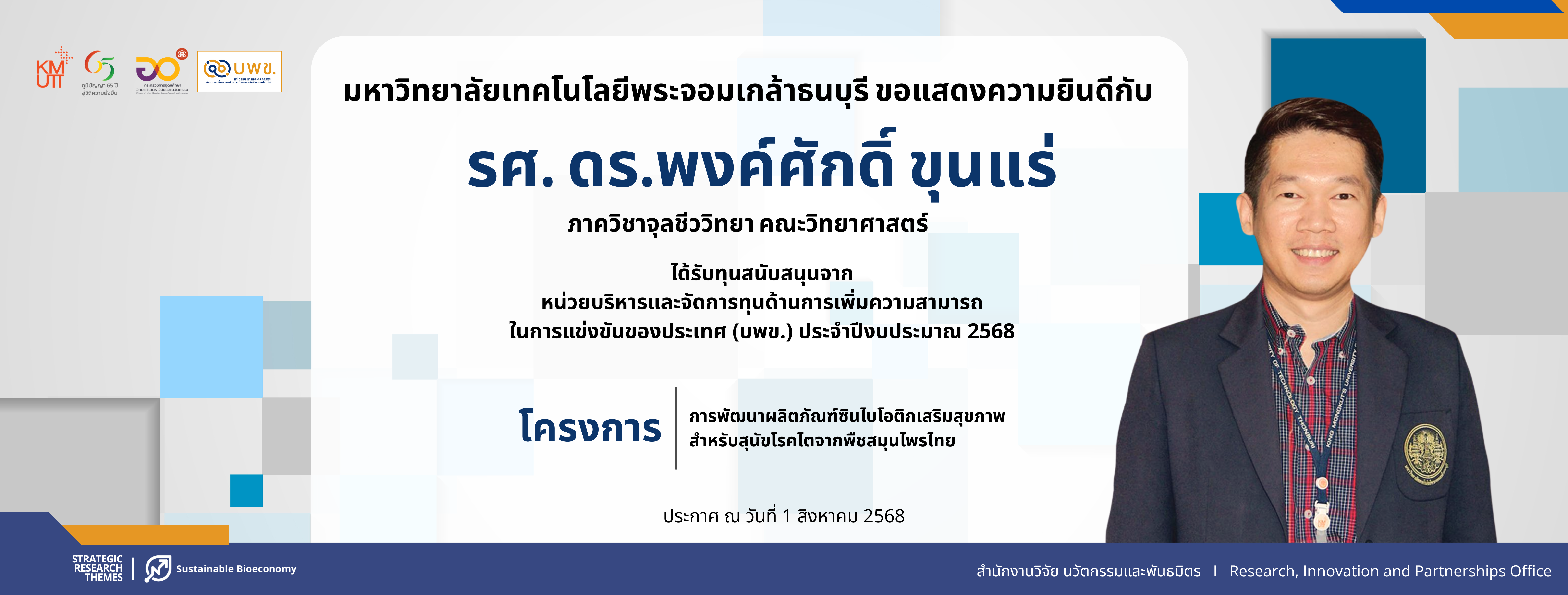 สวนพ. ขอเชิญส่งโครงการวิจัยเพื่อขอรับทุนวิจัยพระจอมเกล้าธนบุรี ประจำปีงบประมาณ 2569 รอบ 2