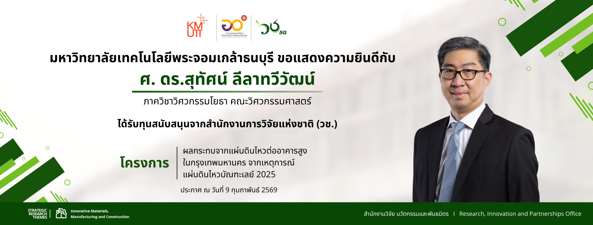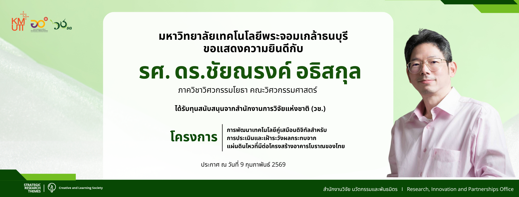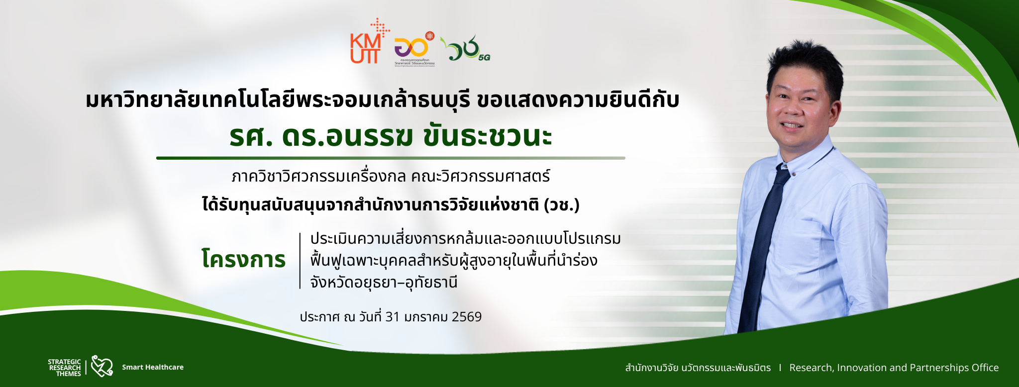 สวนพ. ขอเชิญส่งโครงการวิจัยเพื่อขอรับทุนวิจัยพระจอมเกล้าธนบุรี ประจำปีงบประมาณ 2569 รอบ 2