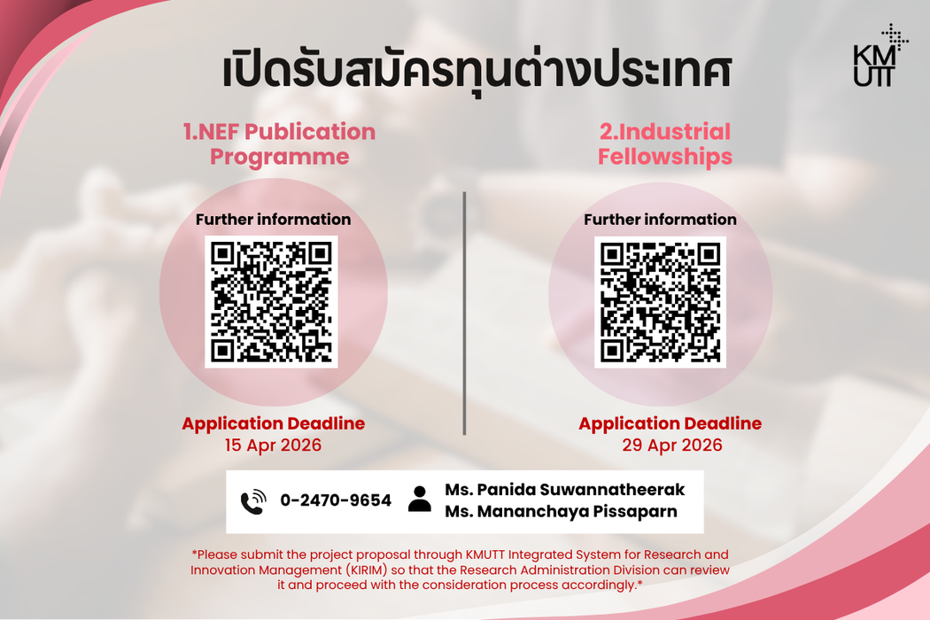สวนพ. ขอเชิญส่งข้อเสนอโครงการวิจัย (ฉบับย่อ) ภายใต้ความร่วมมือ กฟผ.- มจธ.