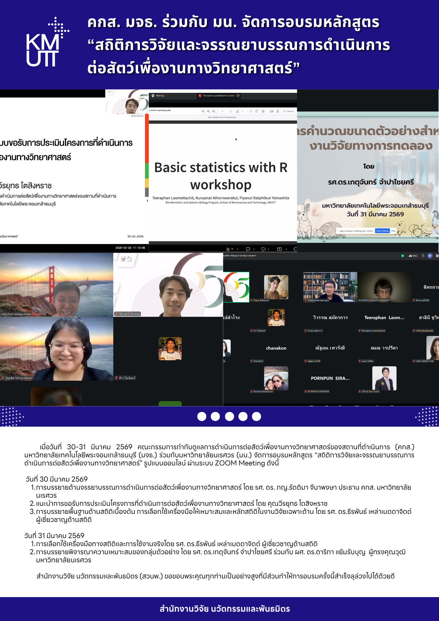 ข่าวประชาสัมพันธ์ ข่าวประชาสัมพันธ์ / ข่าวกิจกรรม คกส. มจธ. ร่วมกับ มน. จัดการอบรมหลักสูตร “สถิติการวิจัยและจรรณยาบรรณการดำเนินการต่อสัตว์เพื่องานทางวิทยาศาสตร์” 09 Apr, 2026 สวนพ. จัดกิจกรรม Young Researchers Bootcamp ภายใต้โครงการ KMUTT Research Community 23 Mar, 2026 มจธ. ขอแสดงความยินดีกับอาจารย์และนักศึกษาคณะวิศวกรรมศาสตร์ที่ได้รับ 4 รางวัลระดับนานาชาติในงาน “The 51st International Exhibition of Inventions Geneva” ณ นครเจนีวา สมาพันธรัฐสวิส 23 Mar, 2026 มจธ. จับมือ กฟผ. ลงนามความร่วมมือวิจัยและนวัตกรรมด้านพลังงาน 19 Mar, 2026 มจธ. ให้การต้อนรับ บพข. เข้าติดตามการดำเนินโครงการวิจัยและนวัตกรรมที่ได้รับทุน 19 Mar, 2026 สกสว. เผยแพร่เอกสารสรุปสาระสำคัญของแผนด้านวิทยาศาสตร์ วิจัยและนวัตกรรมของประเทศ พ.ศ. 2566 – 2570 ฉบับปรับปรุง 19 Mar, 2026 สถาบันวิทยาลัยชุมชนศึกษาดูงานการพัฒนาระบบบริหารจัดการงานวิจัย มจธ. 16 Mar, 2026 Introduction to the Concept of Responsible Research and Innovation (RRI) and the Role of Risk Communication 13 Mar, 2026 สวนพ. จัดอบรมความปลอดภัยทางชีวภาพและการรักษาความปลอดภัยทางชีวภาพในสถานปฏิบัติการระดับ 2 มจธ. ครั้งที่ 1/2569 12 Mar, 2026 มหาวิทยาลัยเทคโนโลยีพระจอมเกล้าธนบุรี ผนึกกำลังร่วมกับ มหาวิทยาลัยสงขลานครินทร์ และมหาวิทยาลัยแม่ฟ้าหลวง จัดกิจกรรม PSUxKMUTTxMFU Bootcamp ครั้งที่ 1 11 Mar, 2026 ปฎิทินทุนวิจัยภายใน 09 Apr สวนพ. เปิดรับข้อเสนอโครงการวิจัย ประจำปีงบประมาณ 2569 “โครงการสนับสนุนทุนวิจัยเพื่อพัฒนาผลิตภัณฑ์ต้นแบบร่วมกับพันธมิตร” ด้วยมหาวิทยาลัย โดยสำนักงานวิจัย นวัตกรรมและพันธมิตร (สวนพ.) เปิดรับข้อเสนอโครงการวิจัย ป... อ่านต่อ 24 Mar แจ้งเตือน "การยื่นขอรับสนับสนุนโครงการทุนนักวิจัยหลังปริญญาเอก (Post-doctoral Fellowship) ประจำปีงบประมาณ 2569 รอบ 3" (รอบสุดท้ายของปี 2569) "การยื่นขอรับสนับสนุนโครงการทุนนักวิจัยหลังปริญญาเอก (Post-doctoral Fellowship) ประจำปีงบประมาณ... อ่านต่อ 09 Mar สวนพ. เปิดรับข้อเสนอภายใต้โครงการสนับสนุนการใช้ประโยชน์ผลงานวิจัยเชิงพาณิชย์ ประจำปีงบประมาณ 2569 ปั้นงานวิจัยให้ “ขายได้จริง” พร้อมทะยานสู่เชิงพาณิชย์ สวนพ. มจธ. เปิดรับข้อเสนอภายใต้โครงการสนั... อ่านต่อ 05 Mar สวนพ. เปิดรับสมัครนักศึกษา เพื่อรับทุนการศึกษาเพชรพระจอมเกล้ามหาบัณฑิต ประเภททุนสนับสนุนกลุ่มวิจัย ประจำปี 2569 สำนักงานวิจัย นวัตกรรมและพันธมิตร (สวนพ.) รับสมัครนักศึกษา เพื่อรับทุนการศึกษาเพชรพระจอมเ... อ่านต่อ 24 Feb สวนพ. เปิดรับข้อเสนอทุนอุดหนุนงานวิจัยเพื่อส่งเสริมความร่วมมือกับเครือข่ายพันธมิตร ภายใต้ความร่วมมือกับมหาวิทยาลัยสงขลานครินทร์ ปีงบประมาณ 2569 สำนักงานวิจัย นวัตกรรมและพันธมิตร (สวนพ.) เปิดรับข้อเสนอทุนอุดหนุนงานวิจัยเพื่อส่งเสริมคว... อ่านต่อ 13 Feb แจ้งเตือน กา
